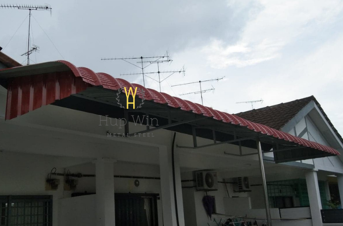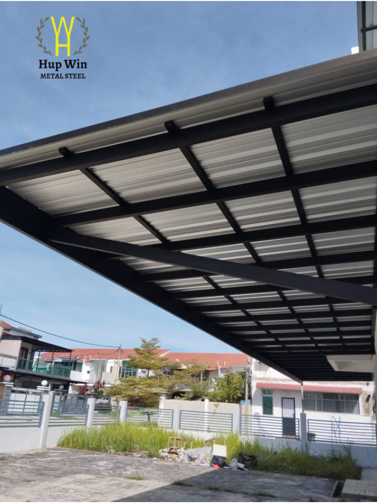 A modern car porch awning using metal deck roofing provides strong rain protection while maintaining a sleek, minimal profile. Popular for landed homes in Malaysia. ✔️ Color options: Grey, Dark Blue, Brick Red ✔️ Water-tight installation with slope design ✔️ Compatible with steel or aluminium frames ✔️ Custom size based on porch dimensions