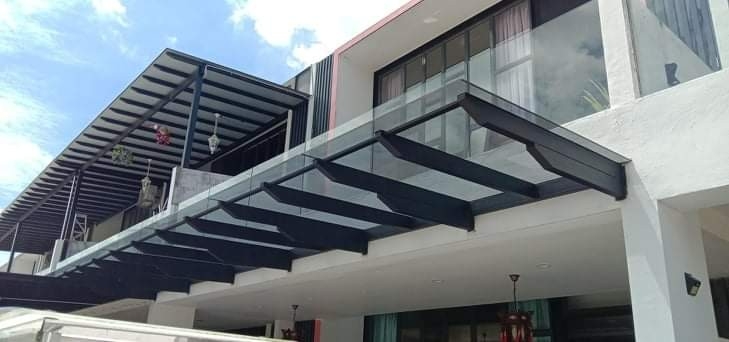 Combines solid metal deck top for rain cover with transparent polycarbonate panels at the sides to allow natural light into the space. ✔️ UV-blocking polycarbonate options ✔️ Strong structure with minimal framing ✔️ Great for balconies or patio areas ✔️ Easy to maintain